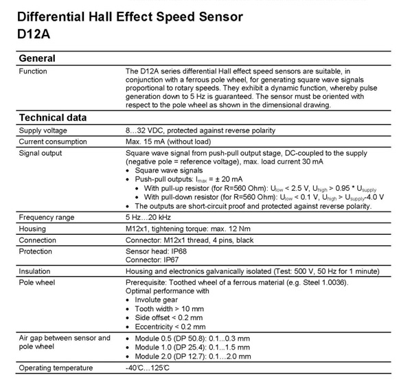 D12A 速度傳感器|齒輪轉速傳感器產品型號-參數-接線圖