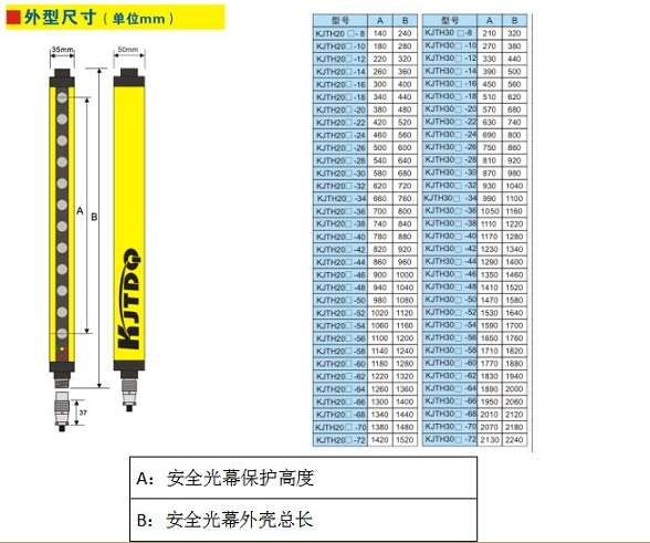 KJTTBH - 測量型安全光幕|安全光幕產品型號-參數-接線圖