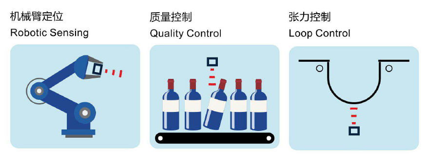 不受顏色和形狀的影響,不受被測目標材質的限制,在工控自動化場景中得到廣泛的應用。下面列舉了一些行業中的典型應用。